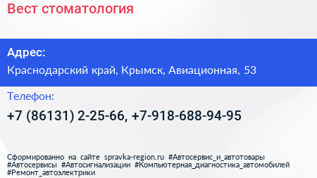 Вест, стоматология по адресу Краснодарский край, Крымск, Авиационная, 53 в дальнейшем Организация, размещена в следующих категориях: