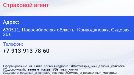 Страховой агент по адресу 630511, Новосибирская область, Криводановка, Садовая, 26в в дальнейшем Организация, размещена в следующих категориях: