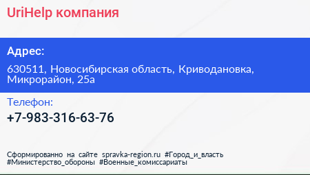 UriHelp, компания по адресу 630511, Новосибирская область, Криводановка, Микрорайон, 25а в дальнейшем Организация, размещена в следующих категориях: