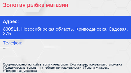 Золотая рыбка, магазин по адресу 630511, Новосибирская область, Криводановка, Садовая, 27Б в дальнейшем Организация, размещена в следующих категориях: