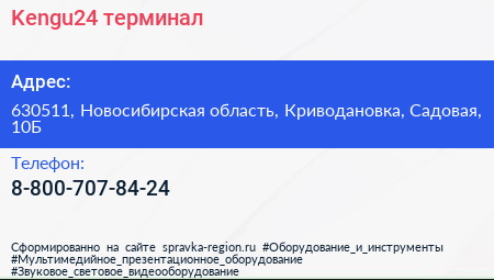 Kengu24, терминал по адресу 630511, Новосибирская область, Криводановка, Садовая, 10Б в дальнейшем Организация, размещена в следующих категориях: