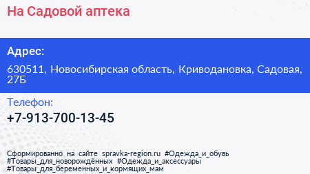 На Садовой, аптека по адресу 630511, Новосибирская область, Криводановка, Садовая, 27Б в дальнейшем Организация, размещена в следующих категориях: