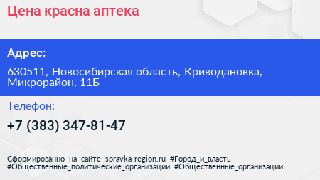 Цена красна, аптека по адресу 630511, Новосибирская область, Криводановка, Микрорайон, 11Б в дальнейшем Организация, размещена в следующих категориях: