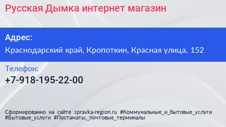 Русская Дымка, интернет-магазин по адресу Краснодарский край, Кропоткин, Красная улица, 152 в дальнейшем Организация, размещена в следующих категориях: