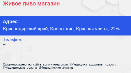 Живое пиво, магазин по адресу Краснодарский край, Кропоткин, Красная улица, 226а в дальнейшем Организация, размещена в следующих категориях: