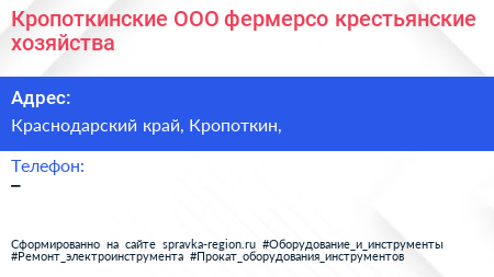 Кропоткинские, ООО, фермерсо-крестьянские хозяйства по адресу Краснодарский край, Кропоткин, в дальнейшем Организация, размещена в следующих категориях: