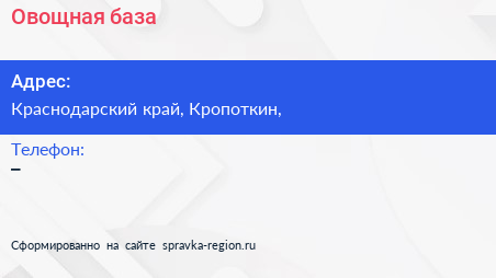Овощная база по адресу Краснодарский край, Кропоткин, в дальнейшем Организация, размещена в следующих категориях: