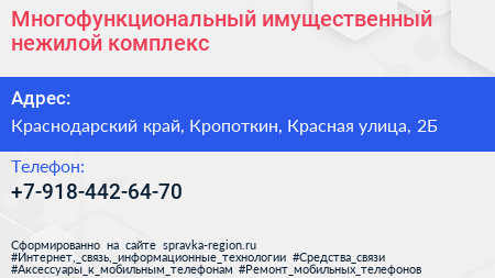 Многофункциональный имущественный нежилой комплекс по адресу Краснодарский край, Кропоткин, Красная улица, 2Б в дальнейшем Организация, размещена в следующих категориях: