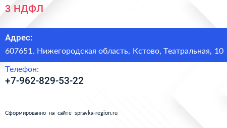 3-НДФЛ по адресу 607651, Нижегородская область, Кстово, Театральная, 10 в дальнейшем Организация, размещена в следующих категориях: