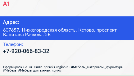 А1 по адресу 607657, Нижегородская область, Кстово, проспект Капитана Рачкова, 5Б в дальнейшем Организация, размещена в следующих категориях: