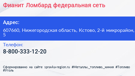 Фианит-Ломбард, федеральная сеть по адресу 607660, Нижегородская область, Кстово, 2-й микрорайон, 5 в дальнейшем Организация, размещена в следующих категориях: