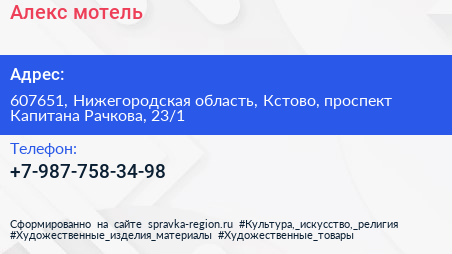 Алекс, мотель по адресу 607651, Нижегородская область, Кстово, проспект Капитана Рачкова, 23/1 в дальнейшем Организация, размещена в следующих категориях: