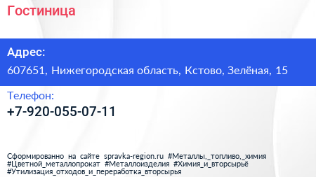 Гостиница по адресу 607651, Нижегородская область, Кстово, Зелёная, 15 в дальнейшем Организация, размещена в следующих категориях: