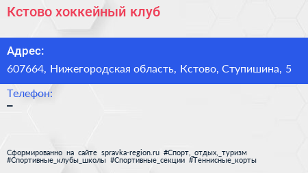 Кстово, хоккейный клуб по адресу 607664, Нижегородская область, Кстово, Ступишина, 5 в дальнейшем Организация, размещена в следующих категориях: