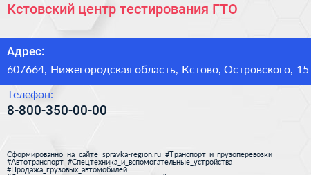 Кстовский центр тестирования ГТО по адресу 607664, Нижегородская область, Кстово, Островского, 15 в дальнейшем Организация, размещена в следующих категориях: