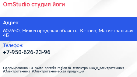 OmStudio, студия йоги по адресу 607650, Нижегородская область, Кстово, Магистральная, 4Б в дальнейшем Организация, размещена в следующих категориях:
