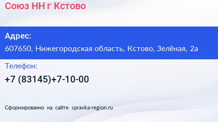 Союз-НН, г. Кстово по адресу 607650, Нижегородская область, Кстово, Зелёная, 2а в дальнейшем Организация, размещена в следующих категориях: