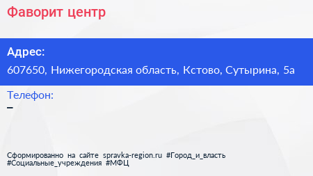 Фаворит, центр по адресу 607650, Нижегородская область, Кстово, Сутырина, 5а в дальнейшем Организация, размещена в следующих категориях: