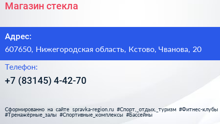 Магазин стекла по адресу 607650, Нижегородская область, Кстово, Чванова, 20 в дальнейшем Организация, размещена в следующих категориях: