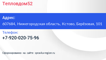 Тепловдом52 по адресу 607684, Нижегородская область, Кстово, Берёзовая, 101 в дальнейшем Организация, размещена в следующих категориях: