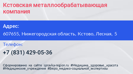 Кстовская металлообрабатывающая компания по адресу 607655, Нижегородская область, Кстово, Лесная, 5 в дальнейшем Организация, размещена в следующих категориях: