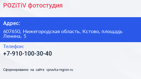 POZiTiV, фотостудия по адресу 607650, Нижегородская область, Кстово, площадь Ленина, 5 в дальнейшем Организация, размещена в следующих категориях: