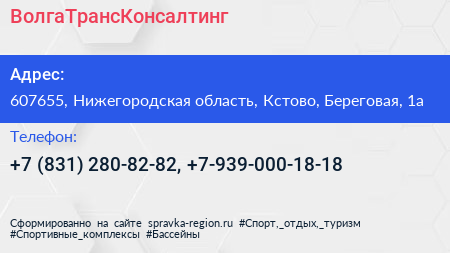 ВолгаТрансКонсалтинг по адресу 607655, Нижегородская область, Кстово, Береговая, 1а в дальнейшем Организация, размещена в следующих категориях: