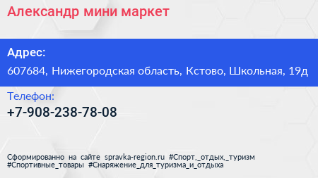 Александр, мини-маркет по адресу 607684, Нижегородская область, Кстово, Школьная, 19д в дальнейшем Организация, размещена в следующих категориях: