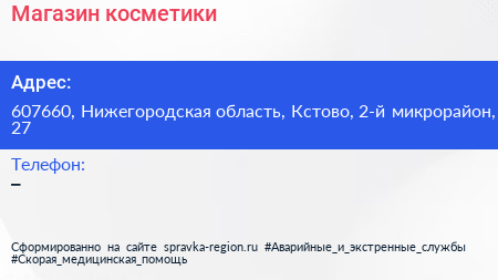 Магазин косметики по адресу 607660, Нижегородская область, Кстово, 2-й микрорайон, 27 в дальнейшем Организация, размещена в следующих категориях: