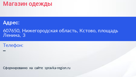 Магазин одежды по адресу 607650, Нижегородская область, Кстово, площадь Ленина, 3 в дальнейшем Организация, размещена в следующих категориях: