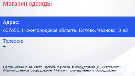 Магазин одежды по адресу 607650, Нижегородская область, Кстово, Чванова, 3 к2 в дальнейшем Организация, размещена в следующих категориях: