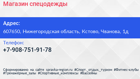 Магазин спецодежды по адресу 607650, Нижегородская область, Кстово, Чванова, 1д в дальнейшем Организация, размещена в следующих категориях: