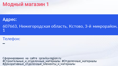 Модный магазин №1 по адресу 607663, Нижегородская область, Кстово, 3-й микрорайон, 1 в дальнейшем Организация, размещена в следующих категориях: