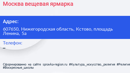 Москва, вещевая ярмарка по адресу 607650, Нижегородская область, Кстово, площадь Ленина, 5а в дальнейшем Организация, размещена в следующих категориях: