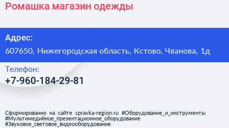 Ромашка, магазин одежды по адресу 607650, Нижегородская область, Кстово, Чванова, 1д в дальнейшем Организация, размещена в следующих категориях: