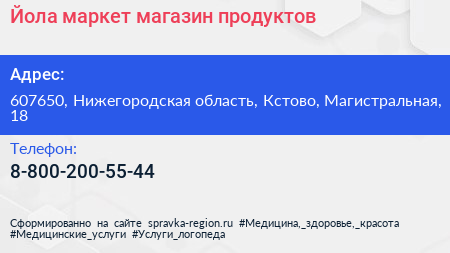 Йола-маркет, магазин продуктов по адресу 607650, Нижегородская область, Кстово, Магистральная, 18 в дальнейшем Организация, размещена в следующих категориях: