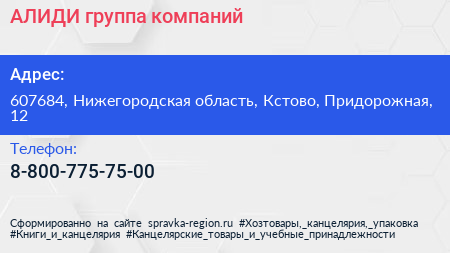АЛИДИ, группа компаний по адресу 607684, Нижегородская область, Кстово, Придорожная, 12 в дальнейшем Организация, размещена в следующих категориях: