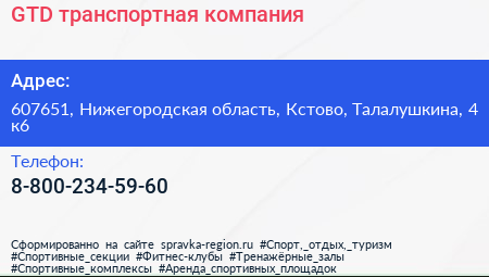 GTD, транспортная компания по адресу 607651, Нижегородская область, Кстово, Талалушкина, 4 к6 в дальнейшем Организация, размещена в следующих категориях: