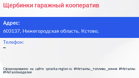 Щербинки, гаражный кооператив по адресу 603137, Нижегородская область, Кстово, в дальнейшем Организация, размещена в следующих категориях: