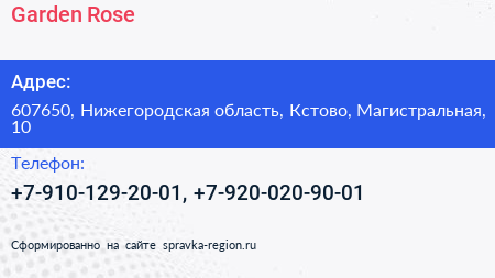 Garden Rose по адресу 607650, Нижегородская область, Кстово, Магистральная, 10 в дальнейшем Организация, размещена в следующих категориях: