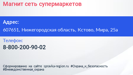 Магнит, сеть супермаркетов по адресу 607651, Нижегородская область, Кстово, Мира, 25а в дальнейшем Организация, размещена в следующих категориях: