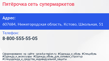 Пятёрочка, сеть супермаркетов по адресу 607684, Нижегородская область, Кстово, Школьная, 51 в дальнейшем Организация, размещена в следующих категориях: