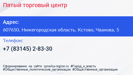 Пятый, торговый центр по адресу 607650, Нижегородская область, Кстово, Чванова, 5 в дальнейшем Организация, размещена в следующих категориях: