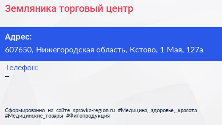 Земляника, торговый центр по адресу 607650, Нижегородская область, Кстово, 1 Мая, 127а в дальнейшем Организация, размещена в следующих категориях: