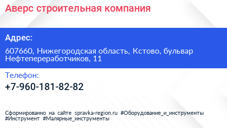 Аверс, строительная компания по адресу 607660, Нижегородская область, Кстово, бульвар Нефтепереработчиков, 11 в дальнейшем Организация, размещена в следующих категориях: