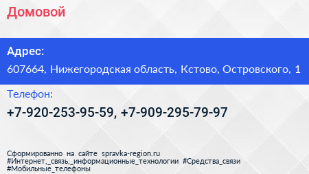 Домовой по адресу 607664, Нижегородская область, Кстово, Островского, 1 в дальнейшем Организация, размещена в следующих категориях: