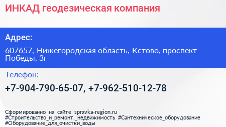 ИНКАД, геодезическая компания по адресу 607657, Нижегородская область, Кстово, проспект Победы, 3г в дальнейшем Организация, размещена в следующих категориях: