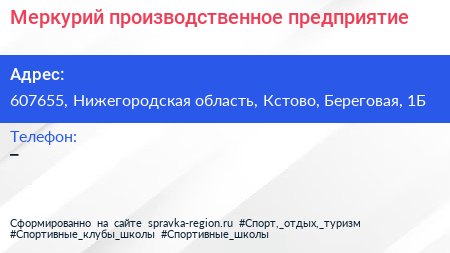 Меркурий, производственное предприятие по адресу 607655, Нижегородская область, Кстово, Береговая, 1Б в дальнейшем Организация, размещена в следующих категориях: