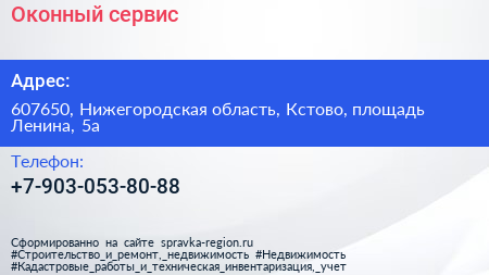 Оконный сервис по адресу 607650, Нижегородская область, Кстово, площадь Ленина, 5а в дальнейшем Организация, размещена в следующих категориях: