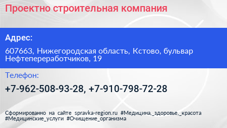 Проектно-строительная компания по адресу 607663, Нижегородская область, Кстово, бульвар Нефтепереработчиков, 19 в дальнейшем Организация, размещена в следующих категориях: